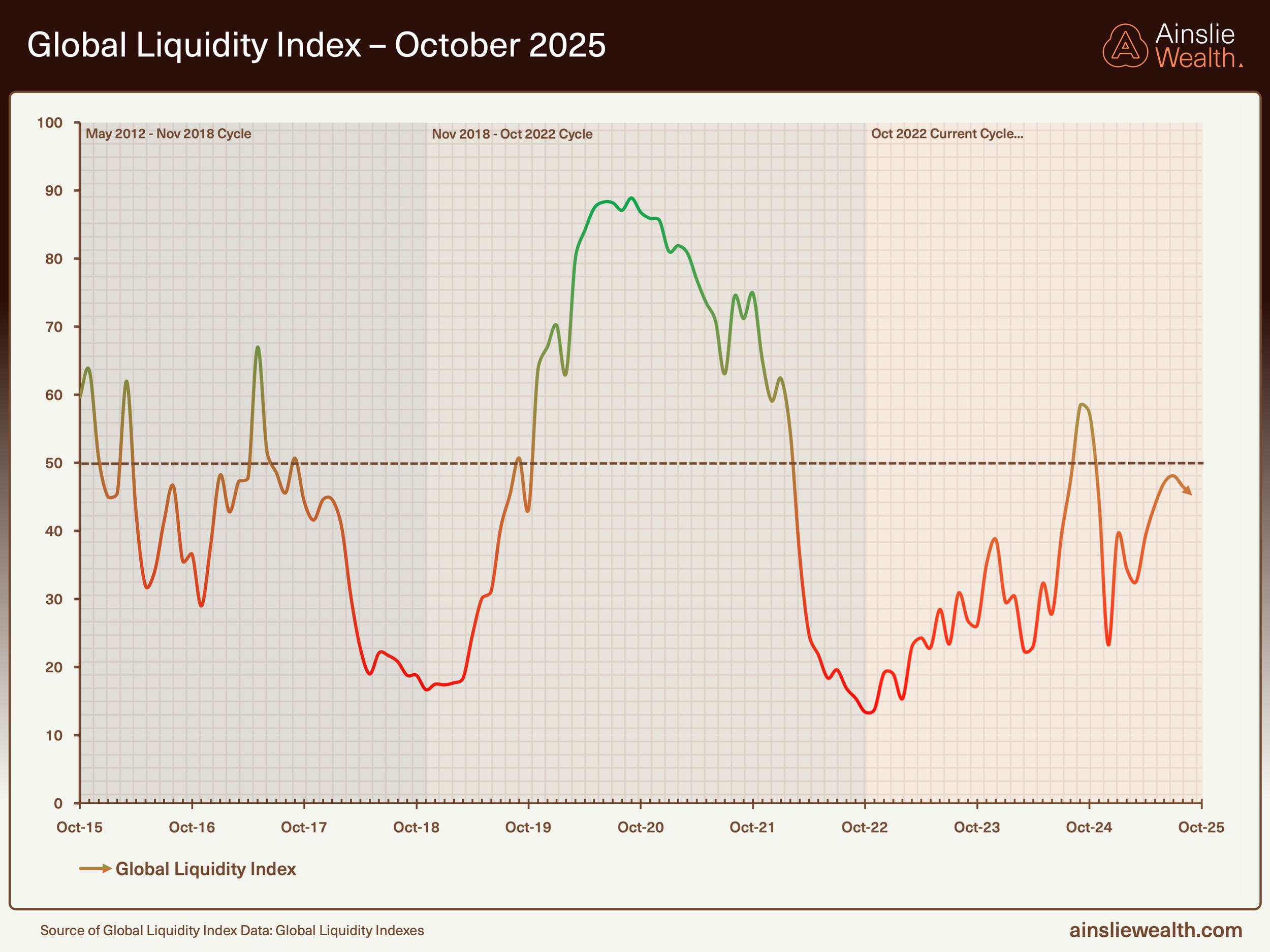 Ainslie Wealth employs a dynamic investment strategy that is guided by thorough macroeconomic analysis and global liquidity conditions, which have been shown to cyclically correlate with the assets in this fund. By actively managing the allocation of Bitcoin, Gold, and Silver, the fund aims to mitigate the risks associated with market volatility and economic downturns.
